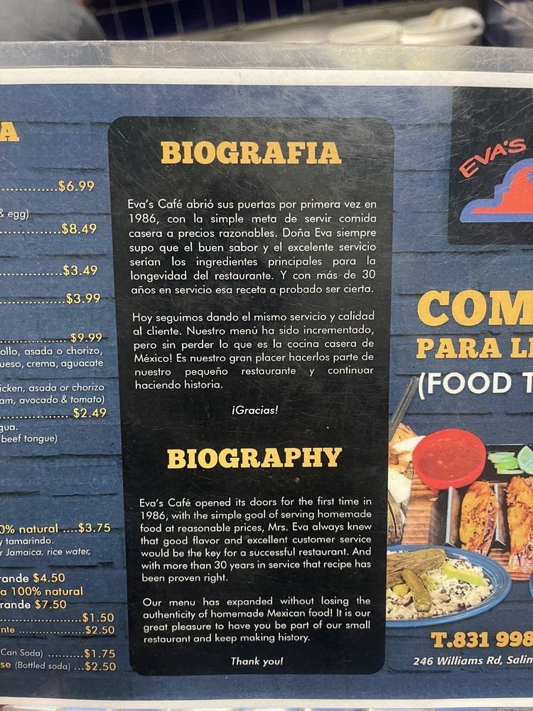Eva’s Cafe, a hidden gem located in Salinas, CA, offers a delightful Mexican menu with a variety of options for every palate. From their mouthwatering chilaquiles to their flavorful beans and nopales on the side, each dish is a culinary treat. The cozy atmosphere and friendly service create a welcoming dining experience that keeps customers coming back for more. With a focus on sustainability, Eva’s Cafe provides compostable and plastic-free packaging, along with the option to bring your own container. Whether you're dining in, ordering takeout, or hosting a catered event, Eva’s Cafe is a top choice for delicious Mexican cuisine. Don't miss out on the opportunity to savor the best Mexican food in town. Make sure to try their signature dishes like Red Sauce Chilaquiles and immerse yourself in a true taste of Mexico at Eva’s Cafe.